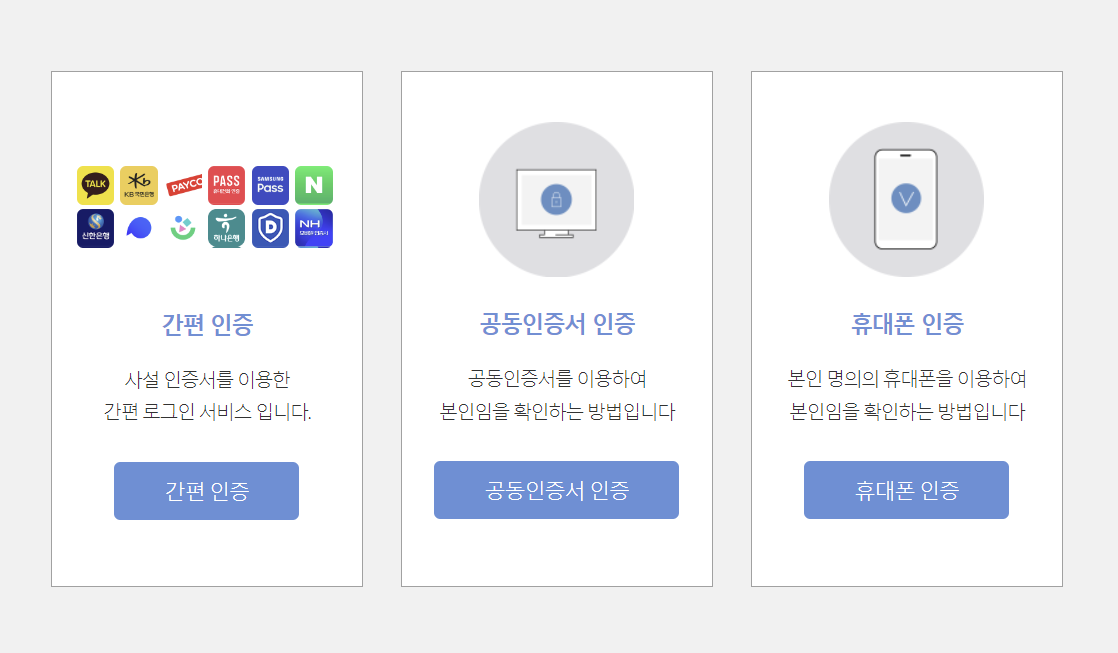 4. 간편인증, 공동인증서 인증, 휴대폰 인증