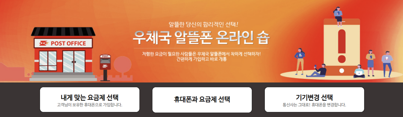 망설일 시간에 지금 당장 <우체국 알뜰폰> 온라인 샵으로 이동하세요!